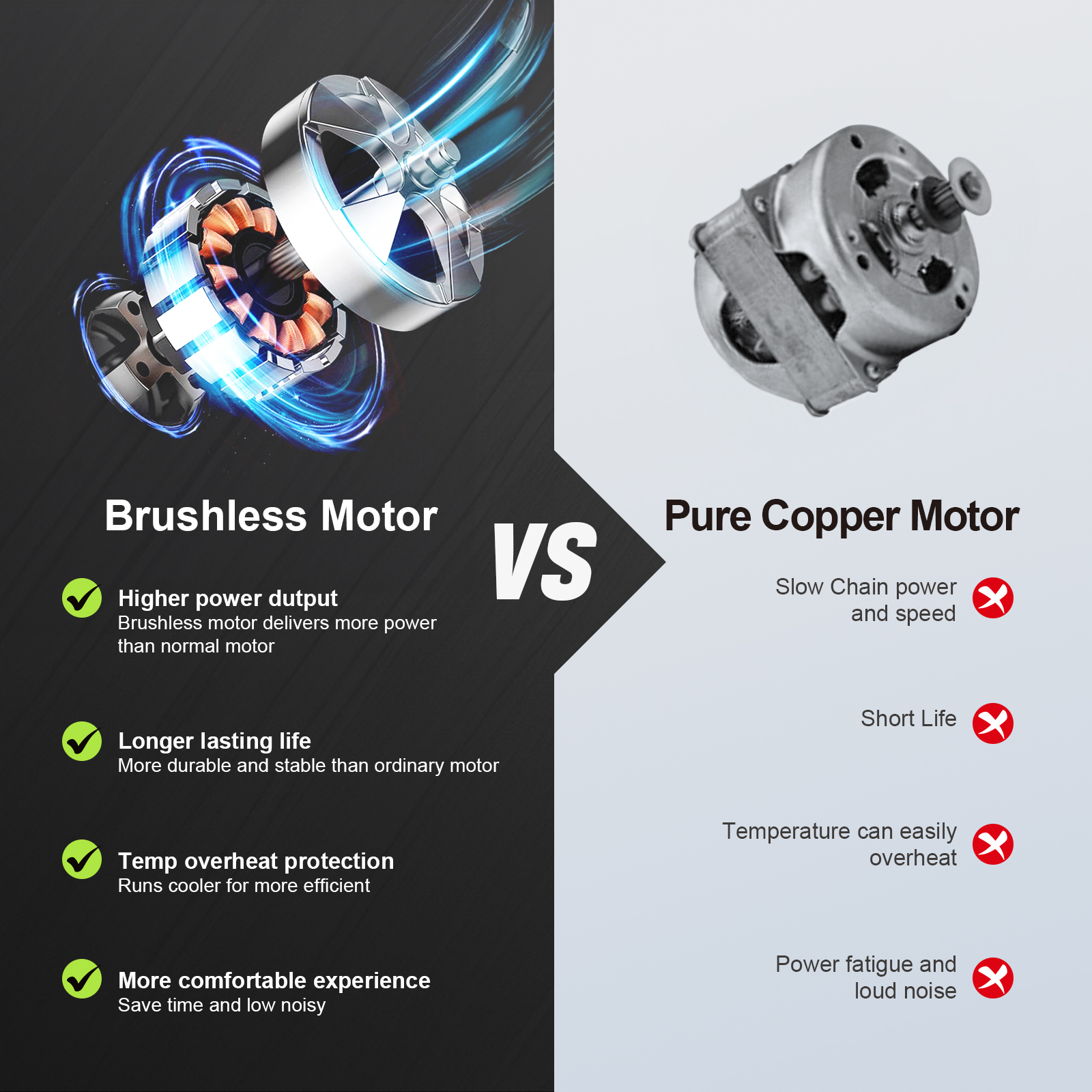 - 【Powerful Brushless Moter 】Go for our badass DEREAL brushless chainsaw and get a real workhorse. Unlike those weak brushed motors, this upgraded chainsaw delivers 470% longer lifespan, 95% more power, and 260% greater efficiency. With our cordless pole saw for tree trimming, you can effortlessly maintain your landscape. Trim branches, prune trees, and shape hedges with precision and ease.